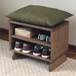 Lindo, robusto e charmoso, este puff sapateira é super resistente. Feito com madeira maciça de reflorestamento, é ecologicamente correto.Fica perfeito em qualquer ambiente, além de super útil!Muito versátil, este puff pode ser como porta livros, cds e dvs, revisteiro, sapateira, enfim..é só usar sua criatividade, escolher um espaço bem charmoso e terá uma peça bem funcional e bonita na sua decoração!É entregue montado, só é necessário parafusar o pé.Suporta em torno de 95kg.Acompanha almofada verde.A medida da altura é feita com o pé.Altura: 0.40 cmLargura: 0.30 cmComprimento: 0.50 cmPeso: 8000 g
