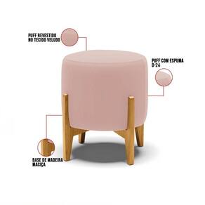 Puff Stella Veludo Rosê Base Madeira Castanho D03 - D'rossi
