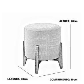 Material do assento: Linho, Veludo, Courino Materiais da estrutura: Madeira maciça Comprimento: 43 cm Largura: 40 cm Diâmetro: 40 cm Requer montagem: Não Com altura ajustável: Não Peso: 7,8 Kg produção exclusiva produto feito com espuma de qualidade D26 SOFT suporta até 150 Kg madeira Maciça 3 Pés Tecidos e cores disponíveis: - Esse produto está disponível em diversos tecidos e cores. Escolha o seu preferido e decore seu ambiente.