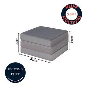 O Puff Multiuso Dobrável Vira Cama 3 Em 1 é um produto versátil e funcional projetado para oferecer conforto e praticidade em qualquer ambiente, seja no quarto ou na sala. Com um design inteligente e moderno, ele é capaz de se transformar em três diferentes utilidades: puff, assento extra e cama. Possui um revestimento resistente e macio, proporcionando uma sensação agradável ao toque. Sua estrutura dobrável permite que ele seja facilmente convertido em um assento extra, oferecendo conforto adicional para visitas inesperadas ou momentos de descontração. Mas a principal característica desse produto é a sua capacidade de se transformar em uma cama confortável. Basta desdobrar a estrutura interna e estender o acolchoado para criar uma superfície ampla e macia, perfeita para uma noite de sono aconchegante. Essa funcionalidade torna o puff ideal para espaços compactos, onde a otimização do espaço é essencial.- Acompanha 1 travesseiro;- Suporta até 100kg;- Espuma D23.DIMENSÕES:ABERTOAltura: 12cm;Largura: 60cm;Comprimento: 1,80cm.FECHADOAltura: 36cm;Largura: 60cm;Comprimento: 60cm.ALMOFADAAltura: 20cm;Largura: 40cm;Comprimento: 60cm.