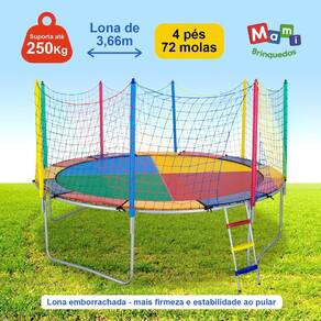 A Cama Elástica Pula Pula 3,66m Colorida Nacional PapiBrink oferece uma experiência divertida e segura para crianças, sendo uma excelente escolha para áreas internas e externas. Este trampolim infantil é projetado para proporcionar momentos de alegria, movimento e energia, ajudando no desenvolvimento motor, equilíbrio e coordenação, enquanto a criança brinca e se exercita.