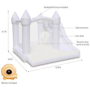Detalhes do Produto: Tamanho inflado de 3,29 m de comprimento x 2,99 m de largura x 2,65 m de altura, Pacote inclui pula-pula, inflador, bolsa de transporte, estacas, kit de reparo e instruções. Limite de peso máximo de 227 kg, peso máximo por pessoa de 45 kg. Número máximo de crianças 5. Siga nossas recomendações de limite de peso para garantir a segurança e longevidade do seu inflável. Fácil montagem e desmontagem, infla em menos de um minuto. Perfeito para uso interno e externo. Bolsa de transporte proporciona portabilidade fácil. MATERIAL DE ALTA QUALIDADE E DURÁVEL 1 Material resistente à perfuração pesado com costuras duplas a quádruplas para um pula-pula inflável altamente durável. 2 Piso de salto feito com material comercial pesado para mais diversão ao pular e um pula-pula durável e de longa duração. 3 Estacas de 9" fortes e seguras. 4 Tubo de entrada de ar de 1,83 m de comprimento. 5 Cesta de basquete com conexão de fita adesiva para segurança. Somente para uso residencial. TESTADO QUANTO À SEGURANÇA A satisfação do cliente é nosso objetivo.