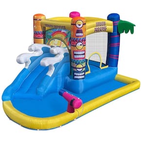 Transforme qualquer dia em uma aventura incrível com a Casa Inflável Minions, oficialmente licenciada e cheia de diversão! Este toboágua infantil tropical permite que seus filhos saltem e deslizem com seus Minions favoritos, oferecendo uma experiência animada e cheia de energia. Com uma arte vibrante e de alta qualidade, este parque aquático inflável não só estimula a imaginação, mas também proporciona horas de diversão travessa.