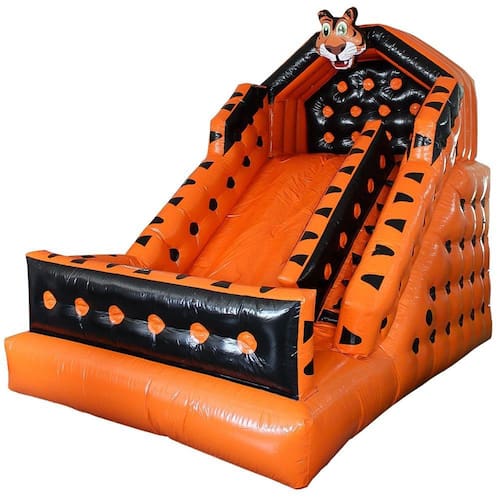 Esse Tobogã Inflável Tigrão é perfeito para locação e uso doméstico. É feito com lona vinílica super resistente, das melhores marcas do Brasil, garantindo segurança, conforto e durabilidade.