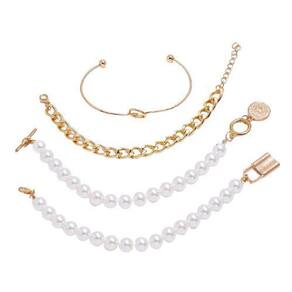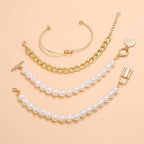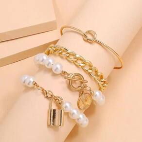 Pulseira 4 Peças Corrente Dourada Cadeado Pérola A Pulseira 4 Peças Corrente Dourada Cadeado Pérola é uma opção elegante e sofisticada para complementar o seu visual. Feita em liga de zinco de alta qualidade, essa pulseira de metal possui um design moderno e delicado, perfeito para diversas ocasiões, como trabalho, casamentos e uso diário. Com um conjunto de 04 pulseiras douradas, essa semijoia é ideal para quem busca um acessório versátil e que pode ser em diferentes combinações. Seu fecho em formato de cadeado traz um toque especial e a pérola adiciona um charme único à peça. Cuidado com suas semijoias: Ao adquirir essa pulseira, é importante ter alguns cuidados para garantir a sua durabilidade. Evite o contato com produtos químicos e de limpeza em geral, como cremes, shampoo, detergentes e perfumes. Esses produtos podem danificar a folheação em ouro 18k da semijoia. Recomendamos que você retire sua peça ao manusear esses produtos. O perfume também merece atenção especial. Evite aplicá-lo diretamente na pulseira, pois o álcool presente em sua composição pode danificar a semijoia ao longo do tempo. O ideal é aplicar o perfume e, somente depois de alguns minutos, quando estiver seco, colocar sua semi joia favorita. Para a limpeza da pulseira, utilize sabão neutro e água pura. Produtos de limpeza podem prejudicar a peça, por isso é recomendado lavá-la com sabão neutro e água. Essa limpeza é indicada para o uso diário e ajuda a eliminar gorduras. Não se esqueça de secar bem a pulseira, você pode usar um secador de cabelo. Para manter o brilho, lustre a peça com uma flanela. Essa pulseira é um produto de alta qualidade e possui contra defeitos de fabricação. As imagens são meramente ilustrativas e a cor pode variar devido às configurações do monitor do computador. Os modelos/tamanhos de referência podem sofrer alterações. Adquira agora mesmo a Pulseira 4 Peças Corrente Dourada Cadeado Pérola e adicione um toque de elegância e estilo aos seus looks! Marca: Não Informado