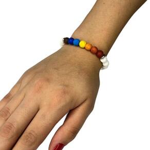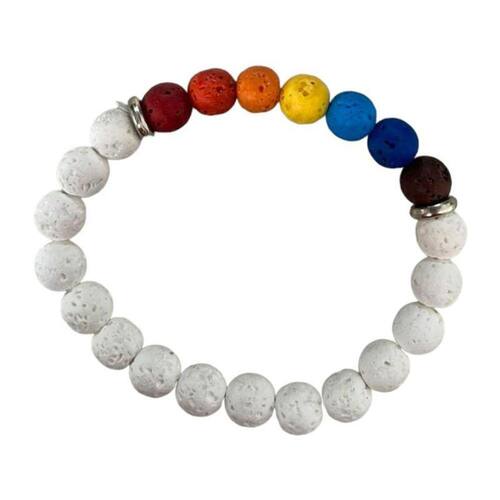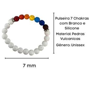 Pulseira 7 Chakras Pedras Vulcanicas com Branco e Silicone Pulseira 7 Chakras Pedras Vulcanicas com Branco e Silicone