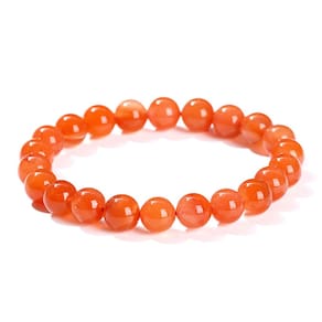 Tamanho: Diâmetro do cordão 8 mm Material: ágata vermelha do sul Ágata vermelha do sul 7A de alto grau — Feita de ágata cornalina vermelha cereja premium, oferecendo alta translucidez e tons quentes vibrantes que aprimoram qualquer roupa. Miçangas redondas lisas de 8 mm — Cada miçanga é cuidadosamente polida para um brilho elegante e uma textura uniforme, ideal para quem aprecia designs minimalistas e refinados. Cordão elástico para conforto — A construção elástica oferece um ajuste flexível e seguro, fácil de usar e remover, adequado para a maioria dos tamanhos de pulso. Símbolo de energia e vitalidade — Conhecida por suas propriedades de base e energização, esta pulseira de ágata combina beleza com intenção positiva. Perfeito para uso diário — A aparência clara e limpa o torna um acessório versátil para moda diária, roupas de trabalho ou prática espiritual.