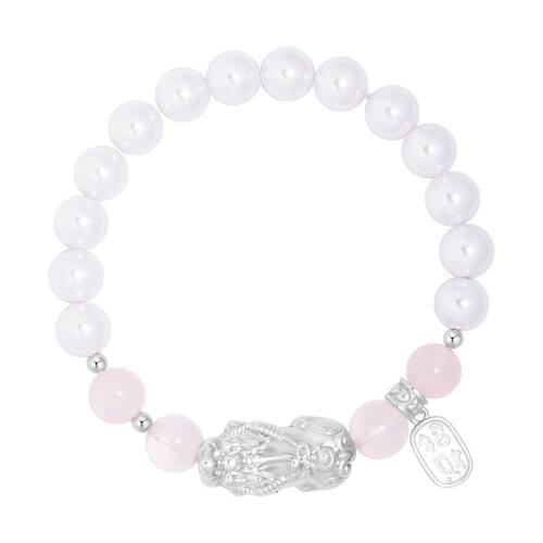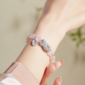 Tamanho: Diâmetro do cordão 8 mm Peso: 16 g Material: cristal rosa pérola e pérolas de imitação de pérolas — Combina cristais rosa suaves e pérolas artificiais brilhantes no tamanho de 8 mm, oferecendo uma aparência harmoniosa com energia feminina suave. Peça central Pixius em prata 999 — Apresenta um pingente Pixius finamente feito em prata maciça, um símbolo tradicional chinês de fortuna e proteção. Etiqueta de bênção e detalhes em prata — Inclui um pingente prateado com símbolos gravados de sorte e felicidade, realçando o significado espiritual da pulseira. Estética oriental moderna — Um novo design de estilo chinês que combina espiritualidade, tradição e elegância sutil para mulheres que apreciam o significado cultural. Ajuste elástico confortável — pesa 16 g e é projetado com cordão elástico para caber confortavelmente na maioria dos tamanhos de pulso, ideal para uso diário e ocasiões conscientes.