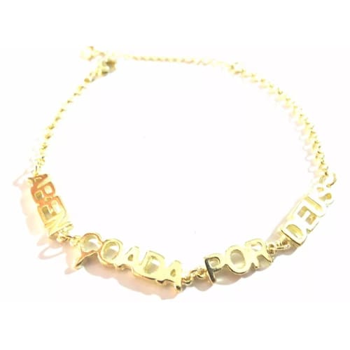 Pulseira Abençoada Por Deus Religiosa Folheado Ouro 18k