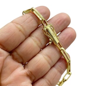 Pulseira Alongado 6mm Banhado a Ouro 18K Premium Detalhes do Produto: Material: ligas metálicas de alta qualidade, especialmente tratadas para fixação e absorção do ouro, com acabamento em verniz protetor. Aparência: visual idêntico ao ouro maciço. Produção: artesanal, com atenção meticulosa aos detalhes. Banho: 10 camadas espessas de ouro 18k, finalizadas com verniz antialérgico . Elos: soldados varia conforme o modelo . Pedras: zircônias brilhantes cravejadas quando aplicável . Tamanhos Disponíveis: Cordões Masculinos: 70cm padrão e 60cm sob consulta/Pedido Via Chat . Cordões Femininos: 50cm padrão e 45cm sob consulta/Pedido Via Chat . Pulseiras: 21cm padrão ; tamanhos de 18cm a 23cm sob consulta/Pedido Via Chat. Pingentes: conforme imagens; consulte para mais detalhes via chat. Espessuras Recomendadas para Cordões / Pingentes: P: 1mm a 4mm M: 4mm a 8mm G: 6mm a 13mm Gg: 12mm a 18mm Incluso na Compra: Saquinho de organza para armazenamento seguro. Caixa elegante, perfeita para presente. Cupom de desconto para a próxima compra. Flyer com outros produtos da coleção. Carta de agradecimento personalizada. Adesivo da marca ToJoia18k. Informações Adicionais: : 6 meses termos acompanham o produto . Devolução: 7 dias para devolução sem questionamentos. Envio: despacho em até 24 horas úteis após confirmação do pagamento. Cuidados com a Peça: Evite contato com produtos químicos; aguarde o perfume secar antes de usar. Evite contato com shampoo, condicionadores e suor excessivo. Armazene em local seco, preferencialmente no saquinho de organza fornecido. Uso no mar e piscina é permitido; lave com água corrente e sabão neutro após. Por que Escolher a ToJoia18k Semi-joias luxuosas que combinam estilo, qualidade e sofisticação. Banho espesso de ouro 18k, garantindo brilho duradouro e acabamento impecável. Design exclusivo e produção artesanal, perfeitos para qualquer ocasião. Materiais premium que asseguram durabilidade. Ao escolher uma semi-joia ToJoia18k, você investe em qualidade, elegância e uma experiência única. Aguardamos sua compra Observação: pode ocorrer variação no fecho raramente . Imagens reais, sem edição. Qualquer dúvida, estamos à disposição para esclarecimentos. Marca: Não Informado Ean: 7891050094025