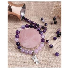 Pulseira Ametista Em Ágata Roxa Jade Lilás Pingente Coruja