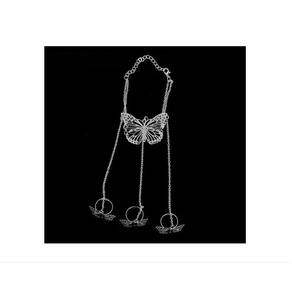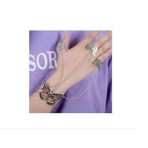 Pulseira Anel Corrente Folheada Prateado Borboletas