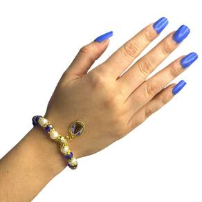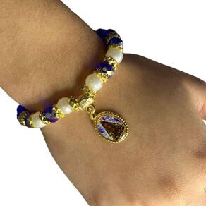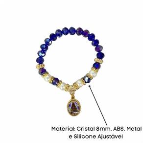 Pulseira Aparecida Azul com Pérolas Cristal e Silicone