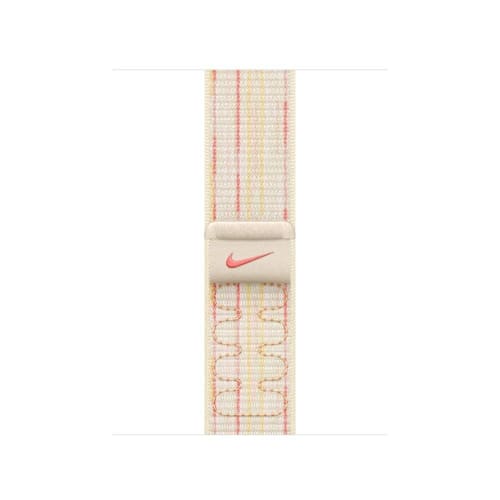 A pulseira loop esportiva é leve e respirável, redesenhada para usar fio excedente de coleções anteriores, com um padrão arrojado.