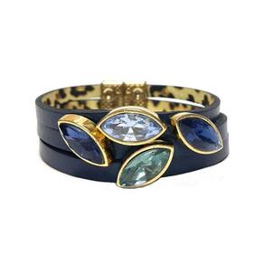 Pulseira Armazem RR Bijoux couro navetes de cristais azul Fecho de imã Tamanho pulseira aberta: 17,5 cm A pulseira Armazem RR Bijoux couro navetes de cristais azul é um acessório moderno e despojado, que traz personalidade e atitude para o look. Perfeito para quem gosta de estar sempre bem arrumada e na moda, as pulseiras são feitas em couro , banho nos metais e fecho de imã. Especificações: Marca: Armazem RR Bijoux Modelo: Pulseira de couro Cor: marinho Material: Banho Dourado Tamanho pulseira: 17,5 cm Sobre a marca: A Armazém RR Bijoux é uma loja que vende de forma segura peças com qualidade e design. São peças femininas, masculinas e infantis. A loja possui também parceria com a designer Alessandra Diana oferecendo a exclusividade das peças com cristais swarovski. Garantindo uma experiência de compra com segurança e praticidade peças que com certeza farão a diferença na composição do seu look desde o básico até o mais elaborado. Marca: Não Informado