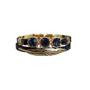 Pulseira Armazem Rr Bijoux Couro Pena Azul Marinho