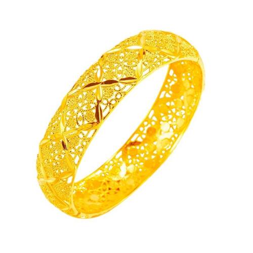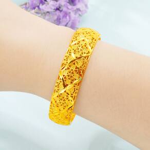 Peso: 25 g Material: Gold Placer Intricate Hollow Escultura — Apresenta artesanato requintado a céu aberto com delicados motivos florais e de quatro folhas, mostrando elegância e arte detalhada. Acabamento Radiant Gold Placer — Feito com placer dourado de alto brilho para uma aparência luxuosa que permanece brilhante ao longo do tempo e complementa várias roupas. Elegância cultural — Inspirada na estética tradicional, esta pulseira combina artesanato tradicional com estilo contemporâneo, perfeita para casamentos e ocasiões festivas. Confortável de usar — Leve, mas substancial, pesando 25 g, a pulseira foi projetada para caber confortavelmente e, ao mesmo tempo, criar uma declaração visual ousada. Peça versátil — ideal para eventos formais, celebrações culturais ou uso diário, esta pulseira aprimora o charme feminino e a sofisticação atemporal.