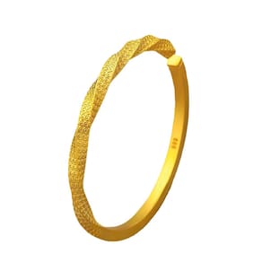 Peso: 23 g Material: Gold Placer Material Gold Placer 23 g — Feita com revestimento de areia dourada sobre uma base forte, esta pulseira oferece durabilidade e tons dourados ricos, com um interior liso para maior conforto. Design de textura em espiral torcida — apresenta um padrão torcido esculpido à mão que reflete a luz sutilmente enquanto adiciona um elemento visual dimensional inspirado na herança. Acabamento jateado fosco vintage — A superfície é finamente fosca para dar um toque antigo, combinando textura rústica com a forma tradicional de pulseira. Manguito aberto para facilitar o ajuste — A estrutura aberta permite um ajuste flexível e fácil desgaste, garantindo um posicionamento seguro em vários tamanhos de pulso. Apelo étnico versátil — perfeito para mulheres que amam joias atemporais com charme cultural, adequadas para roupas tradicionais, festivais ou estilos em camadas.
