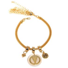 Pulseira mede aproximadamente 18 Cm. Quando comprar peças folheadas, duas coisas devem ser levadas em consideração, a primeira que quanto mais cuidado você ter, mais elas irão durar e que um dia infelizmente elas irão perder o brilho e a cor, afinal não são de ouro maciço. Cuidados: Não pode molhar, praticar exercícios físicos ou trabalhos forçados, suor excessivo, utilizar para dormir. Quando for utilizar qualquer tipo de cosméticos, cremes, perfume, coloque a peça folheada somente após 30 minutos. Aconselhamos a utilizar seu folheado mais para sair. Assim você irá diminuir os riscos que as citações acima ocorram. Quanto mais cuidar, mais ira durar. Nossa é de 3 meses quanto a defeitos de fábrica. Ean: 7909389364921