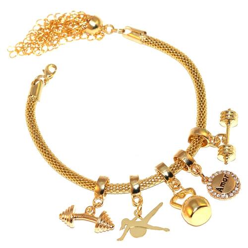 Pulseira mede aproximadamente 18 Cm, contempla todos os berloques. Quando comprar peças folheadas, duas coisas devem ser levadas em consideração, a primeira que quanto mais cuidado você ter, mais elas irão durar e que um dia infelizmente elas irão perder o brilho e a cor, afinal não são de ouro maciço. Cuidados: Não pode molhar, praticar exercícios físicos ou trabalhos forçados, suor excessivo, utilizar para dormir. Quando for utilizar qualquer tipo de cosméticos, cremes, perfume, coloque a peça folheada somente após 30 minutos. Aconselhamos a utilizar seu folheado mais para sair. Assim você irá diminuir os riscos que as citações acima ocorram. Quanto mais cuidar, mais ira durar. Nossa é de 3 meses quanto a defeitos de fábrica. Ean: 7909389356797
