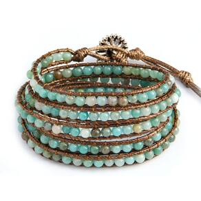 Material: vidro/pedra/PVC. Design de envoltório de 5 camadas — apresenta um design elegante de várias camadas que envolve o pulso para uma aparência de pulseira empilhada, perfeito para criar um toque boho instantâneo. Miçangas de pedra natural de 4 mm — Feitas com contas de pedra natural de 4 mm de alta qualidade em tons calmantes de verde e água, oferecendo uma atmosfera fresca e terrosa, ideal para o verão. Cordão de corda de cera tecido à mão — Feito habilmente com corda de cera marrom durável e miçangas entrelaçadas, combinando flexibilidade, resistência e estilo artesanal. Ajuste ajustável com fecho de botão — Projetado com um laço e fecho de botão simples e seguro, facilmente ajustável para a maioria dos tamanhos de pulso para garantir conforto e estilo. Acessório Boho Everyday — Leve e atraente, esta pulseira é ideal para roupas de praia, roupas casuais, festivais ou qualquer pessoa que busque um look descontraído feito à mão.