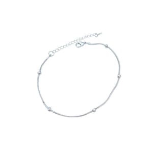 Material: Folheado a Ródio Branco Tamanho da corrente: 16cm com extensor de 5cm Diâmetro das bolinhas: 3mm