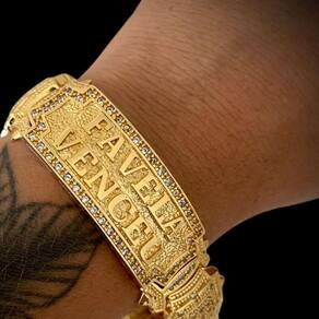 Pulseira Bracelete 18mm Favela Venceu Banhado a Ouro 18K Detalhes do Produto: Material: ligas metálicas de alta qualidade, especialmente tratadas para fixação e absorção do ouro, com acabamento em verniz protetor. Aparência: visual idêntico ao ouro maciço. Produção: artesanal, com atenção meticulosa aos detalhes. Banho: 10 camadas espessas de ouro 18k, finalizadas com verniz antialérgico . Elos: soldados varia conforme o modelo . Pedras: zircônias brilhantes cravejadas quando aplicável . Tamanhos Disponíveis: Cordões Masculinos: 70cm padrão e 60cm sob consulta/Pedido Via Chat . Cordões Femininos: 50cm padrão e 45cm sob consulta/Pedido Via Chat . Pulseiras: 21cm padrão ; tamanhos de 18cm a 23cm sob consulta/Pedido Via Chat. Pingentes: conforme imagens; consulte para mais detalhes via chat. Espessuras Recomendadas para Cordões / Pingentes: P: 1mm a 4mm M: 4mm a 8mm G: 6mm a 13mm Gg: 12mm a 18mm Incluso na Compra: Saquinho de organza para armazenamento seguro. Caixa elegante, perfeita para presente. Cupom de desconto para a próxima compra. Flyer com outros produtos da coleção. Carta de agradecimento personalizada. Adesivo da marca ToJoia18k. Informações Adicionais: : 6 meses termos acompanham o produto . Devolução: 7 dias para devolução sem questionamentos. Envio: despacho em até 24 horas úteis após confirmação do pagamento. Cuidados com a Peça: Evite contato com produtos químicos; aguarde o perfume secar antes de usar. Evite contato com shampoo, condicionadores e suor excessivo. Armazene em local seco, preferencialmente no saquinho de organza fornecido. Uso no mar e piscina é permitido; lave com água corrente e sabão neutro após. Por que Escolher a ToJoia18k Semi-joias luxuosas que combinam estilo, qualidade e sofisticação. Banho espesso de ouro 18k, garantindo brilho duradouro e acabamento impecável. Design exclusivo e produção artesanal, perfeitos para qualquer ocasião. Materiais premium que asseguram durabilidade. Ao escolher uma semi-joia ToJoia18k, você investe em qualidade, elegância e uma experiência única. Aguardamos sua compra Observação: pode ocorrer variação no fecho raramente . Imagens reais, sem edição. Qualquer dúvida, estamos à disposição para esclarecimentos. Marca: Não Informado Ean: 7899960386421