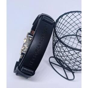 Pulseira masculina ajustável feita em couro sintético na cor preta com placa trabalhada na cor preta gravada Foco, Força e Fé com fecho cromado de trava. Além do estilo, beleza, possuem alta durabilidade.