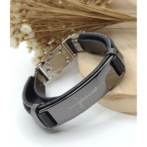 PRODUTO DE ÓTIMA QUALIDADE A PRONTA ENTREGAPulseira Couro Masculina Feminina com os dizeres - Jesus Pulseira masculina ajustável feita em couro sintético com placa em aço escrito em Tudo Posso Naquele que Me Fortalece com trava. Além do estilo, beleza, possuem alta durabilidade.Pulseira de qualidade, linda e moderna que pode compor looks de diferentes estilos e ocasiões.Obs: A pulseira pode ser ajustada do 19 cm até o 24 cm de comprimento.- Comprimento da pulseira aberta: 19 cm a 24 cm (precisa ajustar o tamanho caso chegue diferente da medida do seu pulso)- Largura da pulseira: 15 mm - Material Pulseira: Couro Sintético - Placa : Inoxidável com Verniz Italiano manteno Brilho Durabilidade ( Não desbota ) - Genero: Masculino / Feminino - regulável : sim Ajustável - Placa : Manuscrito - Garantia : 1 mes - Fecho da Trava Cromada Agradecemos pela visita e aguardamos a sua compra. após confirmação pagamento, seu produto sera Postado dentro de 24H Uteis Marca: LVO