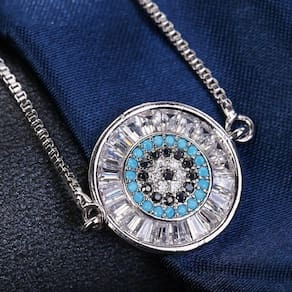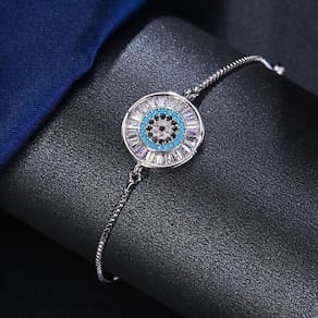 Pulseira Bracelete Prata Com Zircônia Olho Grego Presente