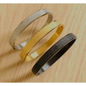 Pulseiras Aço Steel 316L Pai Nosso Dourado e Prateado . Pulseira Aço inox 316LOração Pai Nosso escrito a laser é uma ótima escolha para te deixar ainda mais estiloso(a).Pulseira para um estilo clássico e despojado. Não perdendo a elegância das cores prateadas e douradasTemos diversas variedades. Acesse e conheça:- Pulseira Aço 316L Dourado- Peça Antialérgica- Escrita a Laser- Oração Pai Nosso- Possui em uma das extremidades 6,3 cm e na extremidade menor 5,5 cm, com diâmetro interno de 18cm.Características Técnicas:Material: Aço Inoxidável 316L (Não Enferruja)Acabamento: Oração Pai Nosso escrita em alto relevoFecho: Fecho de trava por encaixeTamanho: Único (Para pulsos de 16 a 19 cm de circunferência)Gênero: Unissex (Masculino e Feminino)Cuidados com a peça:- Evite contato com a água frequentemente;- Evite produtos químicos.