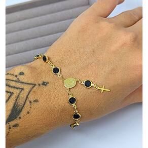 Marca: LVO Modelo: Preto/ Cristal Fecho: Lagosta, garantindo segurança ao usar Comprimento: 16 cm com extensor até 23 cm Largura: 6 mm Peso: 8 gramas Pedras: Contém 11 pedras de cristal que brilham lindamente Pingente: Nossa Senhora Aparecida com cruz, símbolo de fé e proteção