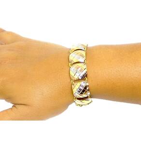 Pulseira Folheada a Ouro 18k Turquia Com Ródio Branco A pulseira folheada a ouro 18k Turquia com ródio branco é um acessório belíssimo que vai sofisticar ainda mais o seu visual. Com tratamento antialérgico e detalhes em ródio branco e rosê, essa pulseira é ideal para todas as ocasiões. Com a marca Visujóias e modelo Turquia, essa pulseira possui uma folheação em ouro 18k de alta qualidade. Seu comprimento é de 22 cm, proporcionando um ajuste confortável em seu pulso. Essa pulseira é perfeita para ser Utilizado em ocasiões especiais, como festas e eventos noturnos, onde você deseja desfrutar da vida noturna com elegância. Os detalhes em ródio branco e rosê dão um toque especial a essa peça, deixando-a ainda mais sofisticada. Além disso, a pulseira folheada a ouro 18k Turquia com ródio branco possui de 6 meses quanto à folheação e 1 ano para defeitos provenientes de fabricação. Ou seja, você pode adquirir essa pulseira com tranquilidade, sabendo que está investindo em uma peça de qualidade. Com essa pulseira, você terá um acessório versátil e elegante, que pode ser em diversas ocasiões. Seu design sofisticado e detalhes em ródio branco e rosê fazem dela um item único e exclusivo. Não perca a oportunidade de adquirir essa pulseira folheada a ouro 18k Turquia com ródio branco e sofisticar ainda mais o seu visual. Aproveite e garanta a sua agora mesmo! Dados Técnicos: - Marca: Visujóias - Modelo: Turquia - Folheação: Ouro 18K - Comprimento: 22 cm - : 6 meses quanto à folheação e 1 ano para defeitos provenientes de fabricação - Tratamento antialérgico A pulseira folheada a ouro 18k Turquia com ródio branco é um acessório que vai deixar o seu visual ainda mais elegante. Adquira já a sua e desfrute de toda a sofisticação que essa peça tem a oferecer. Marca: Não Informado