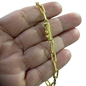 Pulseira Cadeado 5mm Alongado Fecho Canhão Banhado Ouro Detalhes do Produto: Material: ligas metálicas de alta qualidade, especialmente tratadas para fixação e absorção do ouro, com acabamento em verniz protetor. Aparência: visual idêntico ao ouro maciço. Produção: artesanal, com atenção meticulosa aos detalhes. Banho: 10 camadas espessas de ouro 18k, finalizadas com verniz antialérgico . Elos: soldados varia conforme o modelo . Pedras: zircônias brilhantes cravejadas quando aplicável . Tamanhos Disponíveis: Cordões Masculinos: 70cm padrão e 60cm sob consulta/Pedido Via Chat . Cordões Femininos: 50cm padrão e 45cm sob consulta/Pedido Via Chat . Pulseiras: 21cm padrão ; tamanhos de 18cm a 23cm sob consulta/Pedido Via Chat. Pingentes: conforme imagens; consulte para mais detalhes via chat. Espessuras Recomendadas para Cordões / Pingentes: P: 1mm a 4mm M: 4mm a 8mm G: 6mm a 13mm Gg: 12mm a 18mm Incluso na Compra: Saquinho de organza para armazenamento seguro. Caixa elegante, perfeita para presente. Cupom de desconto para a próxima compra. Flyer com outros produtos da coleção. Carta de agradecimento personalizada. Adesivo da marca ToJoia18k. Informações Adicionais: : 6 meses termos acompanham o produto . Devolução: 7 dias para devolução sem questionamentos. Envio: despacho em até 24 horas úteis após confirmação do pagamento. Cuidados com a Peça: Evite contato com produtos químicos; aguarde o perfume secar antes de usar. Evite contato com shampoo, condicionadores e suor excessivo. Armazene em local seco, preferencialmente no saquinho de organza fornecido. Uso no mar e piscina é permitido; lave com água corrente e sabão neutro após. Por que Escolher a ToJoia18k Semi-joias luxuosas que combinam estilo, qualidade e sofisticação. Banho espesso de ouro 18k, garantindo brilho duradouro e acabamento impecável. Design exclusivo e produção artesanal, perfeitos para qualquer ocasião. Materiais premium que asseguram durabilidade. Ao escolher uma semi-joia ToJoia18k, você investe em qualidade, elegância e uma experiência única. Aguardamos sua compra Observação: pode ocorrer variação no fecho raramente . Imagens reais, sem edição. Qualquer dúvida, estamos à disposição para esclarecimentos. Marca: Não Informado Ean: 7892027806863