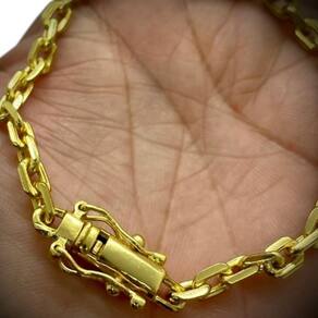 Pulseira Cadeado 6mm Fecho 750 Banhado a Ouro 18K Detalhes do Produto: Material: ligas metálicas de alta qualidade, especialmente tratadas para fixação e absorção do ouro, com acabamento em verniz protetor. Aparência: visual idêntico ao ouro maciço. Produção: artesanal, com atenção meticulosa aos detalhes. Banho: 10 camadas espessas de ouro 18k, finalizadas com verniz antialérgico . Elos: soldados varia conforme o modelo . Pedras: zircônias brilhantes cravejadas quando aplicável . Tamanhos Disponíveis: Cordões Masculinos: 70cm padrão e 60cm sob consulta/Pedido Via Chat . Cordões Femininos: 50cm padrão e 45cm sob consulta/Pedido Via Chat . Pulseiras: 21cm padrão ; tamanhos de 18cm a 23cm sob consulta/Pedido Via Chat. Pingentes: conforme imagens; consulte para mais detalhes via chat. Espessuras Recomendadas para Cordões / Pingentes: P: 1mm a 4mm M: 4mm a 8mm G: 6mm a 13mm Gg: 12mm a 18mm Incluso na Compra: Saquinho de organza para armazenamento seguro. Caixa elegante, perfeita para presente. Cupom de desconto para a próxima compra. Flyer com outros produtos da coleção. Carta de agradecimento personalizada. Adesivo da marca ToJoia18k. Informações Adicionais: : 6 meses termos acompanham o produto . Devolução: 7 dias para devolução sem questionamentos. Envio: despacho em até 24 horas úteis após confirmação do pagamento. Cuidados com a Peça: Evite contato com produtos químicos; aguarde o perfume secar antes de usar. Evite contato com shampoo, condicionadores e suor excessivo. Armazene em local seco, preferencialmente no saquinho de organza fornecido. Uso no mar e piscina é permitido; lave com água corrente e sabão neutro após. Por que Escolher a ToJoia18k Semi-joias luxuosas que combinam estilo, qualidade e sofisticação. Banho espesso de ouro 18k, garantindo brilho duradouro e acabamento impecável. Design exclusivo e produção artesanal, perfeitos para qualquer ocasião. Materiais premium que asseguram durabilidade. Ao escolher uma semi-joia ToJoia18k, você investe em qualidade, elegância e uma experiência única. Aguardamos sua compra Observação: pode ocorrer variação no fecho raramente . Imagens reais, sem edição. Qualquer dúvida, estamos à disposição para esclarecimentos. Marca: Não Informado