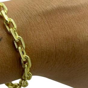 Pulseira Cadeado 6mm Fecho Canhão Banhado Ouro 18K Detalhes do Produto: Material: ligas metálicas de alta qualidade, especialmente tratadas para fixação e absorção do ouro, com acabamento em verniz protetor. Aparência: visual idêntico ao ouro maciço. Produção: artesanal, com atenção meticulosa aos detalhes. Banho: 10 camadas espessas de ouro 18k, finalizadas com verniz antialérgico . Elos: soldados varia conforme o modelo . Pedras: zircônias brilhantes cravejadas quando aplicável . Tamanhos Disponíveis: Cordões Masculinos: 70cm padrão e 60cm sob consulta/Pedido Via Chat . Cordões Femininos: 50cm padrão e 45cm sob consulta/Pedido Via Chat . Pulseiras: 21cm padrão ; tamanhos de 18cm a 23cm sob consulta/Pedido Via Chat. Pingentes: conforme imagens; consulte para mais detalhes via chat. Espessuras Recomendadas para Cordões / Pingentes: P: 1mm a 4mm M: 4mm a 8mm G: 6mm a 13mm Gg: 12mm a 18mm Incluso na Compra: Saquinho de organza para armazenamento seguro. Caixa elegante, perfeita para presente. Cupom de desconto para a próxima compra. Flyer com outros produtos da coleção. Carta de agradecimento personalizada. Adesivo da marca ToJoia18k. Informações Adicionais: : 6 meses termos acompanham o produto . Devolução: 7 dias para devolução sem questionamentos. Envio: despacho em até 24 horas úteis após confirmação do pagamento. Cuidados com a Peça: Evite contato com produtos químicos; aguarde o perfume secar antes de usar. Evite contato com shampoo, condicionadores e suor excessivo. Armazene em local seco, preferencialmente no saquinho de organza fornecido. Uso no mar e piscina é permitido; lave com água corrente e sabão neutro após. Por que Escolher a ToJoia18k Semi-joias luxuosas que combinam estilo, qualidade e sofisticação. Banho espesso de ouro 18k, garantindo brilho duradouro e acabamento impecável. Design exclusivo e produção artesanal, perfeitos para qualquer ocasião. Materiais premium que asseguram durabilidade. Ao escolher uma semi-joia ToJoia18k, você investe em qualidade, elegância e uma experiência única. Aguardamos sua compra Observação: pode ocorrer variação no fecho raramente . Imagens reais, sem edição. Qualquer dúvida, estamos à disposição para esclarecimentos. Marca: Não Informado Ean: 7891232738570