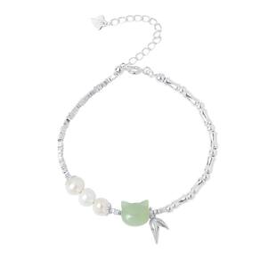 Tamanho: Diâmetro do cordão 6 mm Peso: 6 g Material: pérola/prata S925 Adorável peça central de cabeça de gato — Apresenta uma divertida miçanga de jade hetiana combinada com um pingente prateado de folha de bambu para uma aparência extravagante e refinada. Pérolas naturais de água doce — acentuadas com brilhantes pérolas brancas que trazem suavidade e contraste ao design. Corrente exclusiva com textura de bambu — combina tubos de prata inspirados em bambu com microesferas facetadas para uma textura orgânica artesanal. Tamanho ajustável — Inclui corrente de extensão para um ajuste flexível em vários tamanhos de pulso, oferecendo conforto e personalização. Novo design de estilo chinês — Uma deliciosa mistura de simbolismo oriental e minimalismo contemporâneo, perfeita para mulheres elegantes e amantes de gatos.