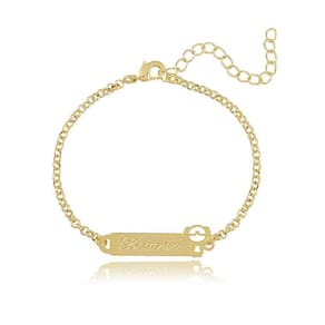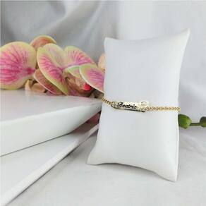 Uma linda pulseira personalizada com o nome em uma chapinha, um verdadeiro encanto.