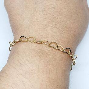 Pulseira Chloe exclusivo da Coleção Amore Mio semi jóias de luxo folheada a ouro 18k ,pulseira com elos de coração com 5 fios. Super tendência para deixar você super elegante com as semi jóias Maria Rita Designer. Ficha técnica; Tipo de banho: Folheado a ouro 18K Cor do banho:Dourado Peso:4,5 gs Tamanho:19cm comprimento e 5,0cm de alongador . Você receberá suas semi jóias embalada em caixa acompanhada do certificado de . Cuidados e conservação com a semi jòia: Para o seu conforto utilizamos materiais que reduzem o risco de alergia e camadas de banho de qualidade que aumentam a durabilidade ,por isso a de 2 anos. Para manter o brilho e a cor da sua semi jòia, são necessários alguns cuidados simples, como evitar o contato com produtos químicos, como itens de limpeza, cloro de piscina, entre outros; procurar não tomar banho com a semi jòia para evitar a opacidade do metal; e limpar a peça com uma flanela macia, guardando-as sempre individualmente. A Maria Rita Designer acredita que toda mulher é única e especial. Nosso objetivo é contribuir com o destaque de sua beleza através das criações das semi jóias de altíssima qualidade, com modelos clássicos, modernos e contemporâneos, ideal para qualquer momento do seu dia. Para o seu conforto utilizamos materiais que reduzem o risco de alergia e camadas de banho de qualidade que aumentam a durabilidade ,por isso a de 2 anos. A gente faz parte do seu look USEMARIARITA Marca: Não Informado