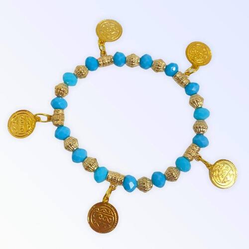 Pulseira Cigana Azul Clara Cristal e Silicone Com Moedas
