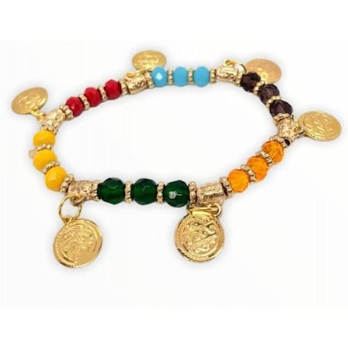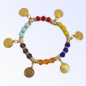 Pulseira cigana colorida cristal e silicone com moedas Esta linda pulseira de fabricação da lua mística é confeccionada artesanalmente com cristais, pedras e elástico de silicone, o que lhe confere durabilidade, resistência, conforto e beleza.É adequada para usar em qualquer ocasião, com design elegante.Excelente para presentear, cheio de amor, carregando promessa e confiança, expressando bênçãos, proteção, sorte e apreciação.É um excelente presente para aniversários, graduações ou apenas ofertar a sorte àqueles que ama.Mude hoje mesmo o seu destinoCaracterísticas técnicas: Pulseira unisex Pedras e cristais: 8 mm Gênero: masculino/feminino Peso: 30 gramascuidados com seu acessório: Evite atrito entre as peças para não comprometer o visual. Cremes corporais, perfumes e óleos podem danificar seus acessórios. Utilize flanela macia e seca para limpeza de sua pulseira. Com esses cuidados sua peça terá uma maior vida útil.Gratidão e sucesso Marca: Não Informado Ean: 7890003909331