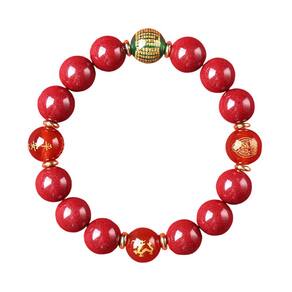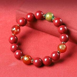 Tamanho: Diâmetro do talão 10 mm Material: CinnabarPremium Cinnabar Beads — Cada grânulo de 10 mm é feito de cinábrio vibrante com uma superfície lisa e um elegante acabamento vermelho, ideal para estilo cultural e expressão espiritual. Símbolos do Zodíaco e do Sutra — Apresenta contas pintadas de ouro com os elementos do Zodíaco Chinês e do Sutra do Coração, que se acredita trazerem proteção, sabedoria e boa sorte durante todo o ano. Pulseira de Proteção Cultural — Especialmente adequada para pessoas em seu ano do zodíaco (Ben Ming Nian), esta pulseira combina tradição e alinhamento de energia em uma peça elegante. Feito à mão e com gênero neutro — Feito cuidadosamente para homens e mulheres, oferecendo um design atemporal de loop único que complementa vários estilos de moda. Ajuste elástico e confortável — Construído com um forte cordão elástico para um ajuste seguro e flexível, adequado para uso diário, meditação ou ocasiões cerimoniais.