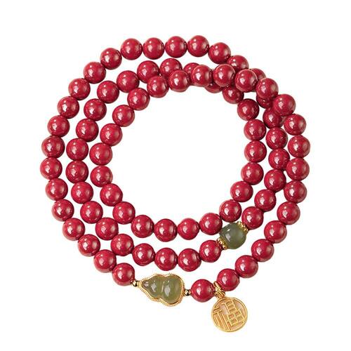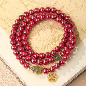 Tamanho: Diâmetro do talão 6 mm Material: CinnabarGrânulos de cinábrio Premium: feitos de cinábrio de alto teor com 6 mm de diâmetro, apresentando um tom vermelho refinado associado à força, vitalidade e harmonia espiritual. Design triplo: o design de fio longo permite que esta pulseira seja usada como pulseira ou colar em camadas, aumentando a versatilidade e a presença. Pingentes de cabaça de jade e moedas: decorados com jade simbólico em forma de cabaça e um pingente dourado “Fu”, ambos representando prosperidade, longevidade e proteção. Estilo étnico leve e luxuoso: combina símbolos auspiciosos chineses tradicionais com um visual limpo e sofisticado, ideal para mulheres espirituais modernas ou focadas na moda. Ajuste elástico e confortável: o design elástico garante um ajuste confortável para a maioria dos tamanhos de pulso, perfeito para uso diário, meditação ou rituais de alinhamento espiritual.