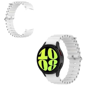 Pulseira com encaixe curvo ondulada para galaxy watch6 44mm Cor: branco Qualidade e compra garantida Atendimento qualificado Enviamos seu pedido em até 1 dia útil após confirmação do pagamento