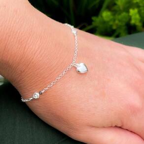 Pulseira Coração Liso e Zirconios Prata 925 18cm -