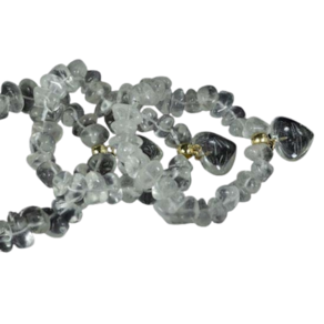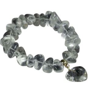 Pulseira Pedra Quartzo Cristal Rolada com coração Também em Quartzo Cristal lapidado e otimo Brilho, a montagem com furos ao meio da pedra unidas por fio silicone o que possibilta varias medidas de usuarios, além de facil reparo ou ajuste basta trocar o silicone e diminuir alguma pedra para uso infantil.