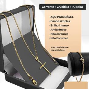 - estilo refinado: o design veneziano da corrente e da pulseira, combinado com o clássico pingente de cruz, cria um visual harmonioso e sofisticado.