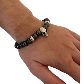 Pulseira Crânio Skull Pedra Hematita 8mm Proteção