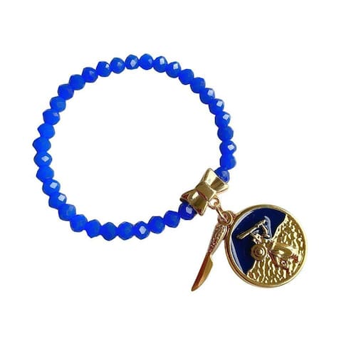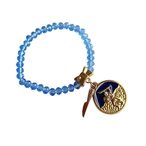 Pulseira Cristais Pingente Orixá Ogum -Banhada A Ouro 18K