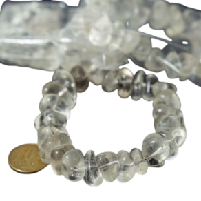 Pulseira Cristal Rolado Pedra Quartzo Natural com Fibra de Silicone, Pedras com lapidação Rolada e Furo transversal, passando fibra de silicone para montar a pulseira. Fibra é mais resistente que o silicone o que possibilta varias medidas de usuarios, além de facil reparo ou ajuste basta trocar a fibra silicone e diminuir alguma pedra para uso infantil.
